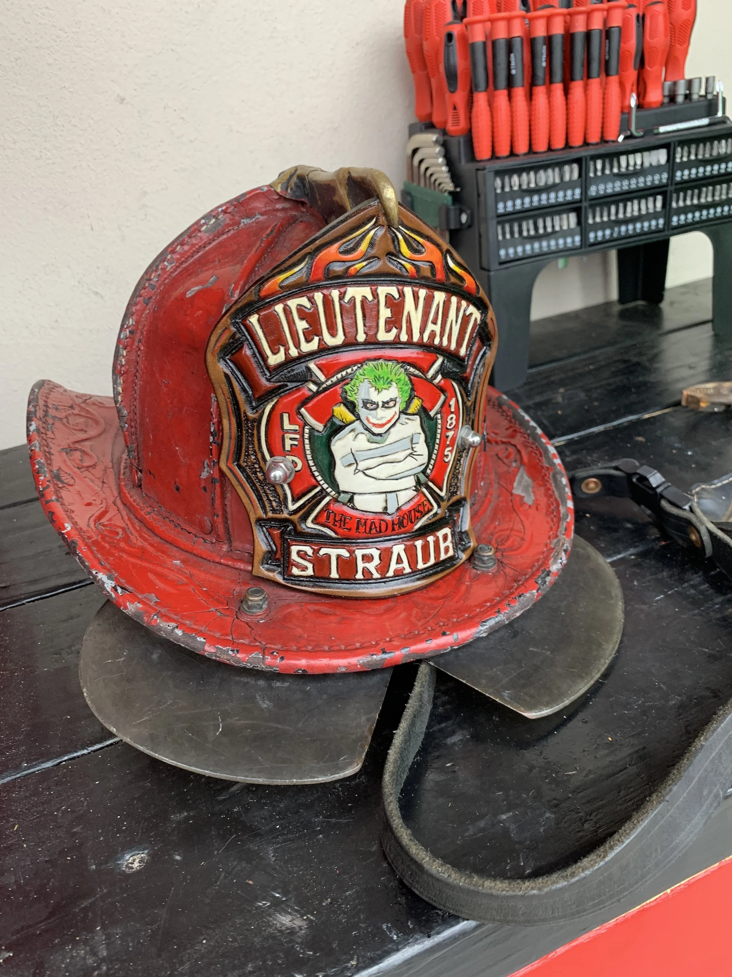 TryWorks Leather Co. Bespoke Fire Helmet Shields of the highest quality. Handcrafted in Maine.